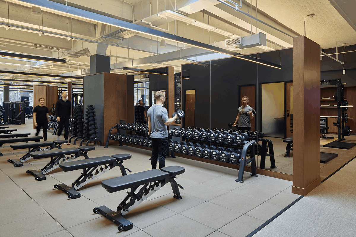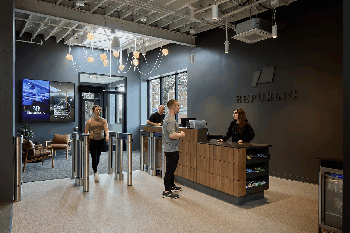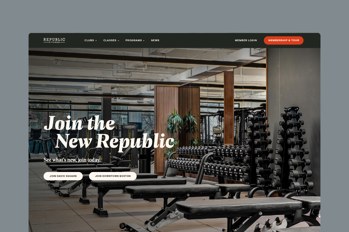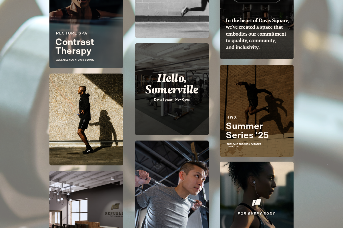 Our decade-long partnership with the Healthworks Group blends brand strategy with architecture. Having created the original Republic Fitness brand in 2014, we were re-engaged in 2024 to lead both the strategic brand realignment and the architectural design for their new Davis Square location.